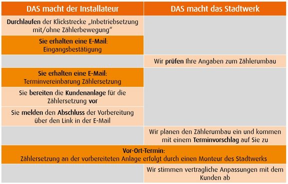 Im Installateurportal steht Ihnen eine komfortable Klickstrecke für die Inbetriebsetzung Strom zur Verfügung (Inbetriebsetzung mit/ohne Zählerbewegung).