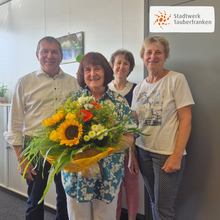 Seit einem halben Jahrhundert ist unsere Kollegin Martina Wolfert ein fester Bestandteil des Stadtwerks Tauberfranken. Sie ist erst die zweite Mitarbeiterin in unserer Unternehmensgeschichte, die dieses außergewöhnliche Jubiläum erreicht hat.